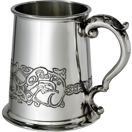 1 Pint Pewter Tankard with Celtic Dragon Design Scroll Handle